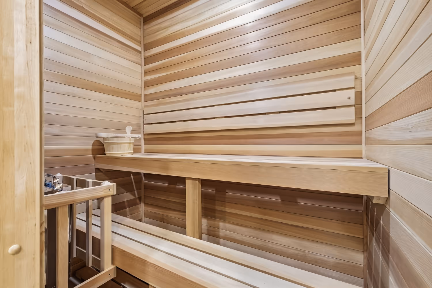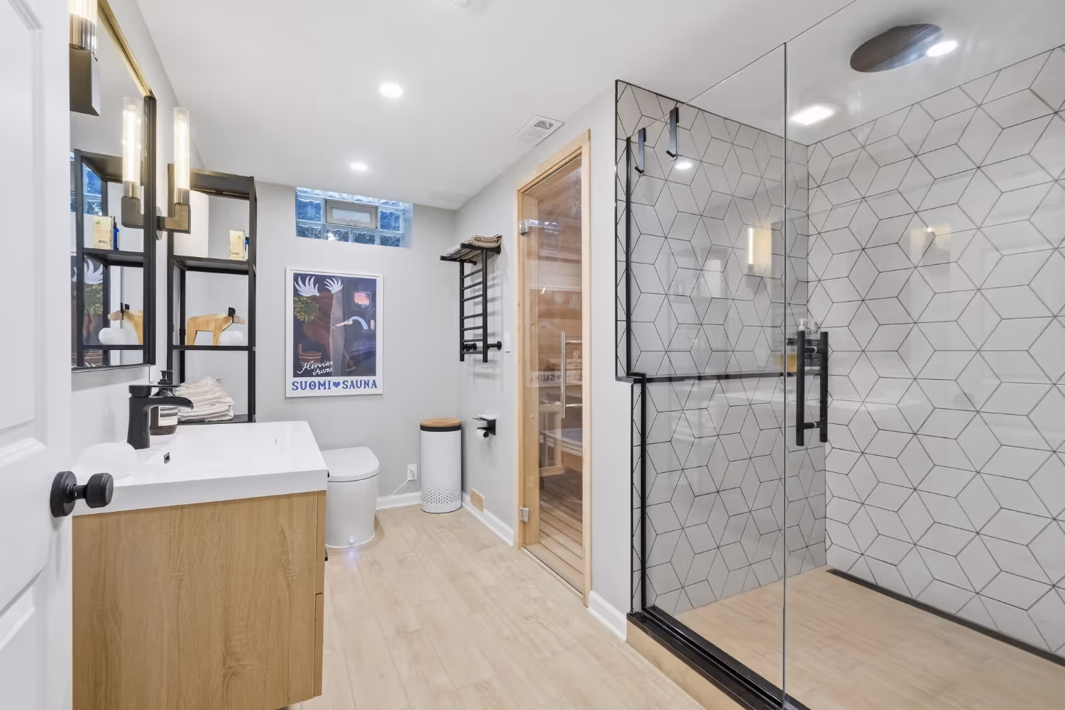 A defining feature of this basement renovation is the full bathroom <<link “full bathroom” to kitchens & bathrooms remodeling services page>>, complete with a built-in sauna. The homeowners wanted to incorporate wellness into their daily routine, and the basement provided the ideal location. We constructed a full bath that complements the overall design while ensuring proper ventilation, moisture management, and long-term durability. The sauna introduces a spa-like element that blends luxury with functionality.